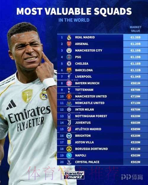 • 俱乐部身价风云与权力版图变迁 当今足坛,衡量一家俱乐部竞争力的方式已经远远超出了传统意义上的奖杯数量与豪门底蕴,整体阵容身价正逐渐成为衡量球队综合实力与未来潜力的一面镜子。最新的俱乐部身价排行显